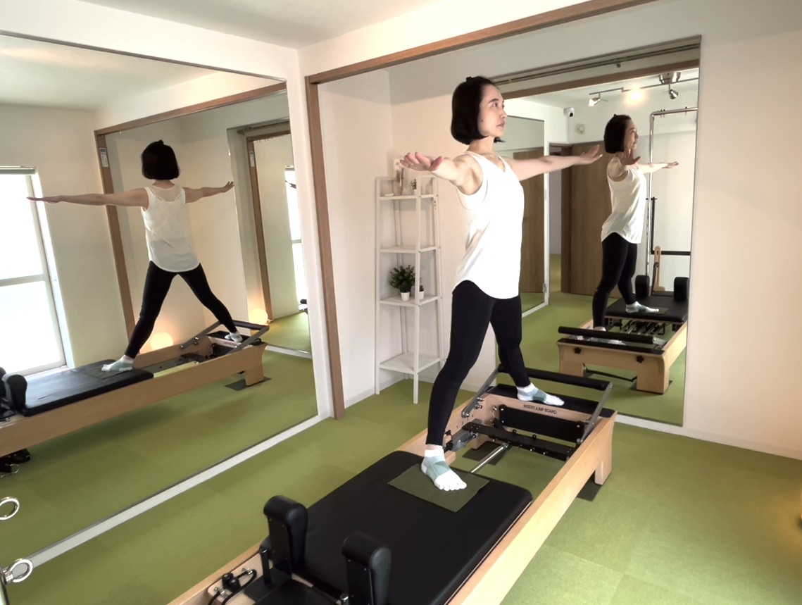皆様、こんにちは。 当スタジオが考えるO脚改善メニュー第2回目は「シングルレッグ フットワーク」をお伝えします。 リフォーマーに仰向けになり、負荷はバネで調整し片足を動かします。久しぶりに体を動かす方や高齢 […]