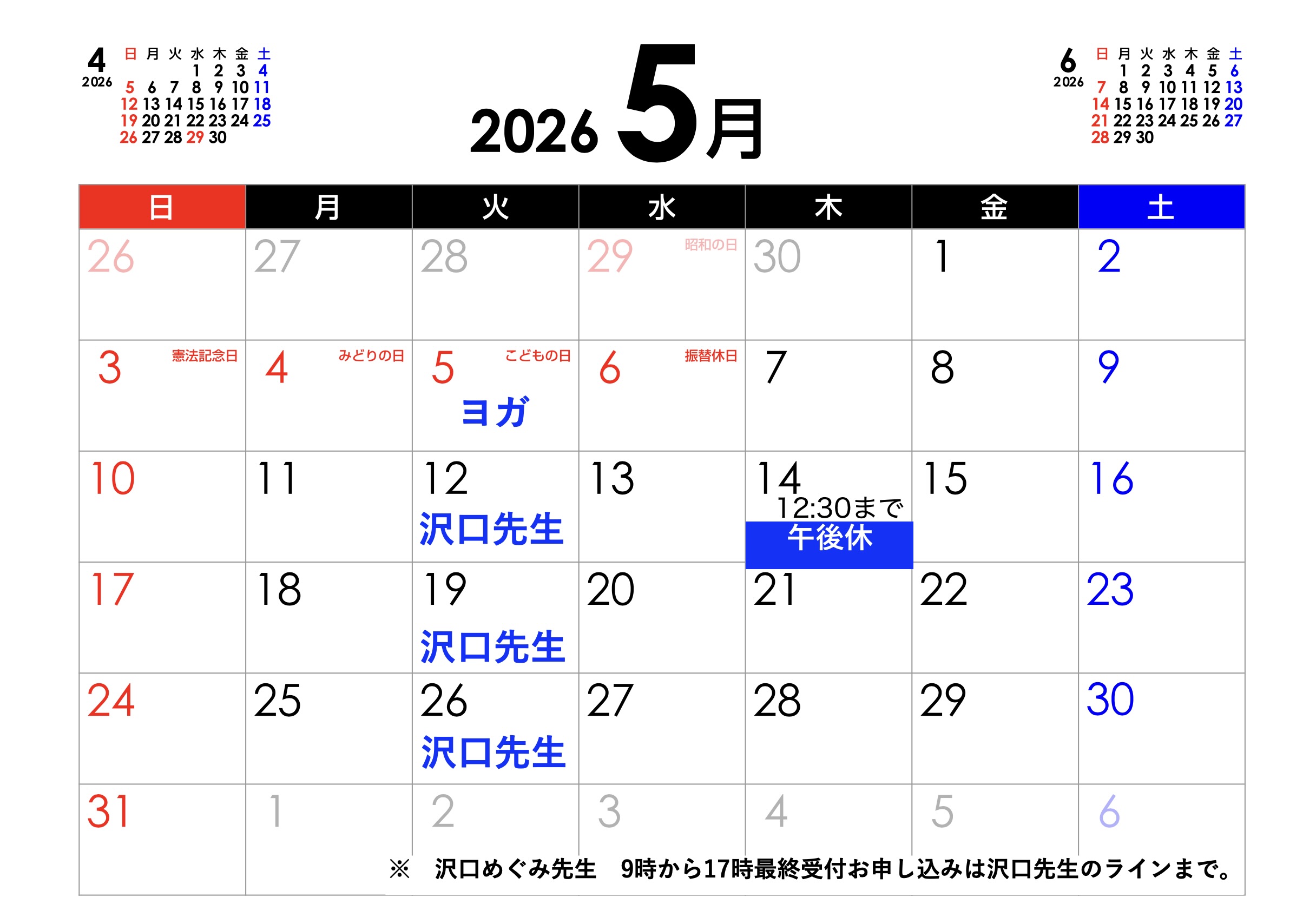 平素は格別のご高配を賜り、厚く御礼申し上げます。 2026月5月の定休日とヨガ日をお知らせ致します。 ご予約、お待ち申し上げます。 ☆ 5月5日 火曜日 ヨガ ☆ 5月12日 火曜日 沢口先生 ☆ 5月14 […]