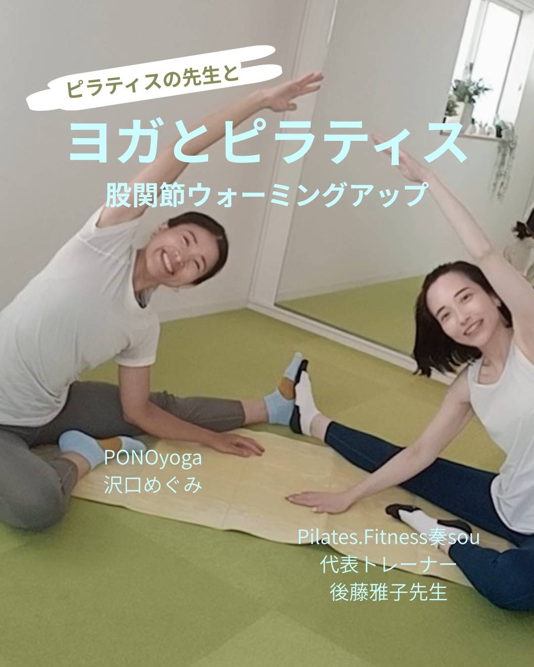 本日は当スタジオとパートナーシップを結び毎週火曜日にヨガ・コンディショニングレッスンを行っている、沢口トレーナーと『股関節のウォーミングアップ』をお互いに体験してみました。