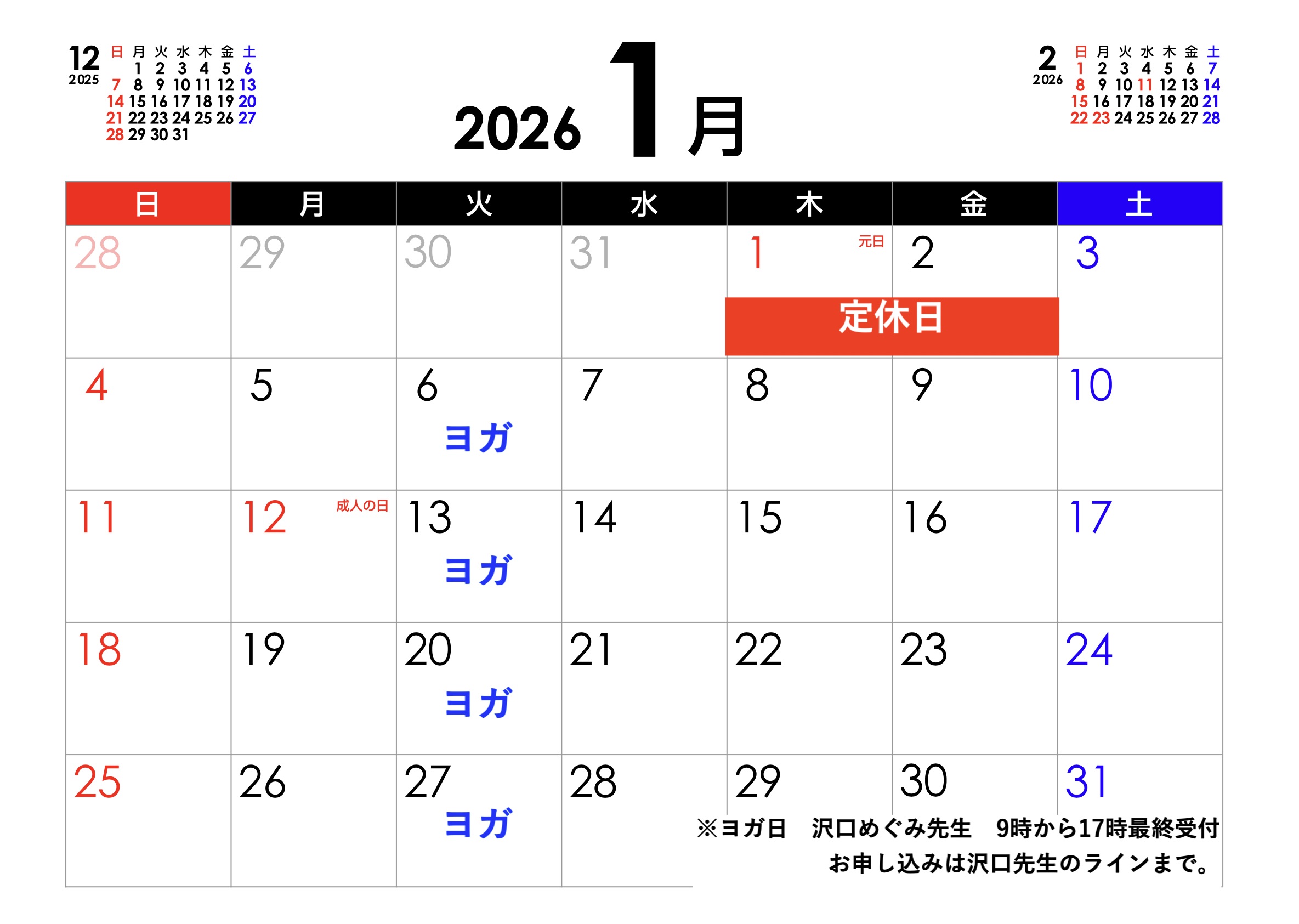 平素は格別のご高配を賜り、厚く御礼申し上げます。 2026月1月の定休日をお知らせ致します。 ご予約、お待ち申し上げます。 ☆ 1月1日 木曜日 終日(年末年始休業日) ☆ 1月2日 金曜日 終日(年末年始 […]